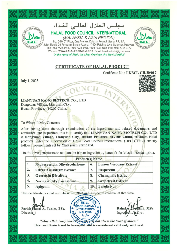 康麓生物科技有限公司是一家成立于2015年的国家级高新技术企业,致力于通过“萃取自然精华,赋健康以美味”的核心理念,成为天然健康与美味领域的创新引领者。 公司专注于植物提取与农产品精深加工,构建了“原料种植-科技创新-产品应用"全产业链体系,打造了四大核心产品系列:美味食品添加剂、营养与健康原料、化妆品原料及动保产品原料。 公司技术实力源于与中国工程院单杨院士团队的深度合作,建立了省级技术研究中心,已获31项国家发明专利,专精特新“小巨人”企业称号。公司严格执行国际国内标准,通过了ISO9001、ISO22000、HACCP、HALAL、KOSHER等多项权威认证。 公司主导产品——天然甜味剂NHDC(新甲基橙皮苷二氢查耳酮),凭借其在增甜、增香及风味修饰上的卓越性能,国际市场占有率遥遥领先。公司的销售网络已覆盖全球,并与奇华顿、IFF、曼氏等国际知名企业建立了稳固的战略合作关系。